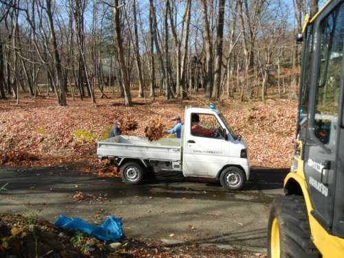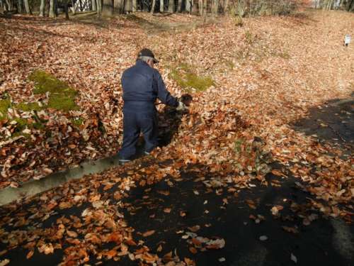 管理員も大急ぎで側溝の落ち葉拾い。。。速攻で側溝を。。。