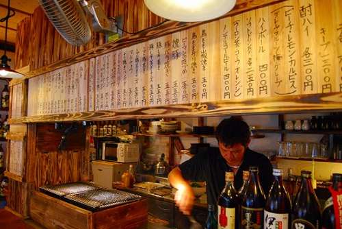 『大將!とりあえずビール』と鉄板焼きのお店へ入店。定番の居酒屋メニューからオムライスやハンバーグまでお品書(shū)きも豊富です。焼酎ビンを片手に注ぐ仕草をしながら『一杯いかがです?』と隣で飲んでいた常連風(fēng)のお客さんが聲を掛けてきました。こちらも遠(yuǎn)慮なく、空になったグラスを差し出すと、水割りの焼酎を作っていただきました。いつの間にか自己紹介。そして共通の話題が見(jiàn)つかると、その後は話は盡きません。初対面なのにこういう出會(huì)いがあるとうれしいものです。