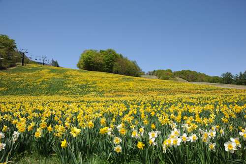 何種類もの水仙がゲレンデいっぱいに咲き誇っている姿