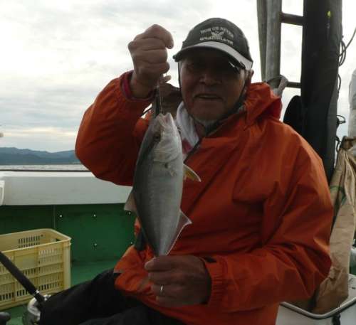 ■最高齢のT様も、やや、固めの竿ながら、右舷後尾で頑張っています