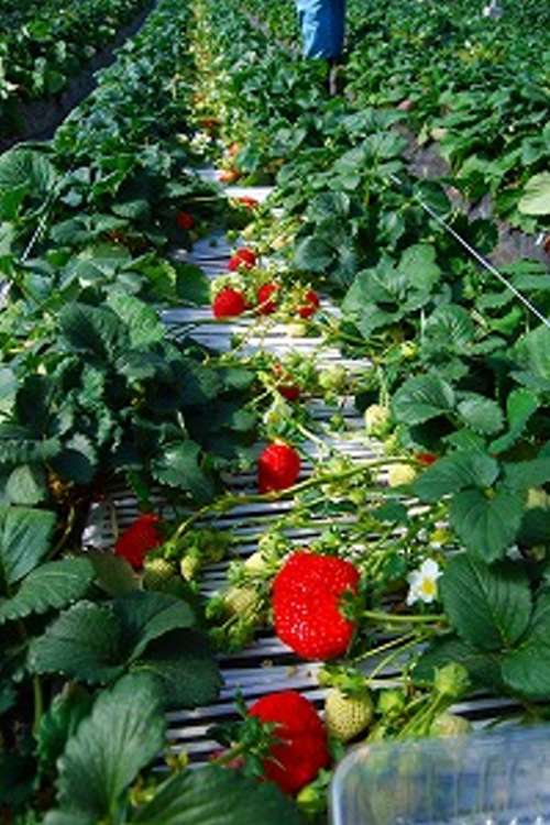 畑に囲まれたのどかな一角に、イチゴのハウスが見(jiàn)えてきます。