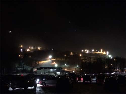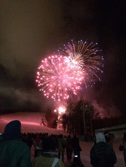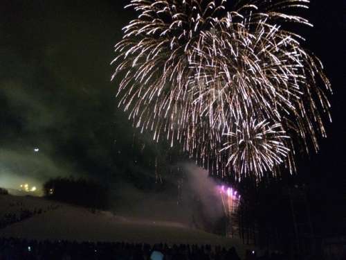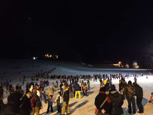 松明を片手にゲレンデを列になりながら滑り降りてきて