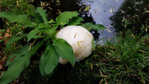 水面に垂れ下がる木の枝に同様の塊を見ることができます
