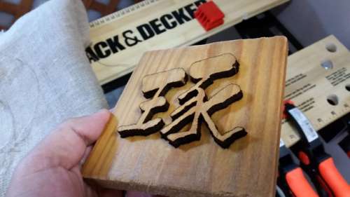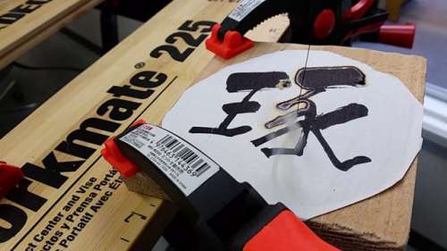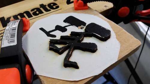 3.電熱線を上下させて、図柄の淵を這わせるように上下させ切り進めます。