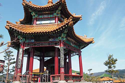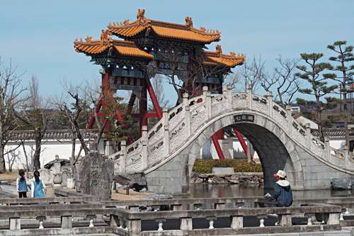 それもそのはず、園內にある建築物は設計や資材調達、 加工に至るまで全て中國で行い、一度仮組みした建物を 解體してから日本に運び、中國の職人さんが再度