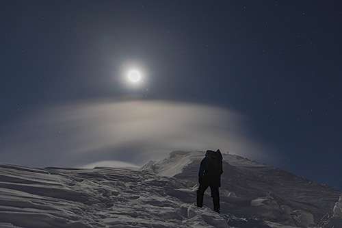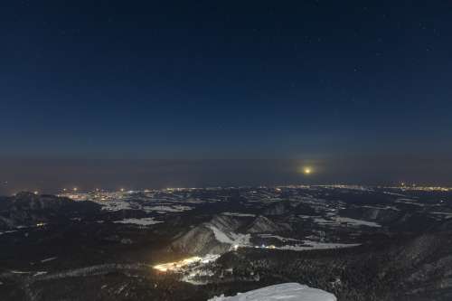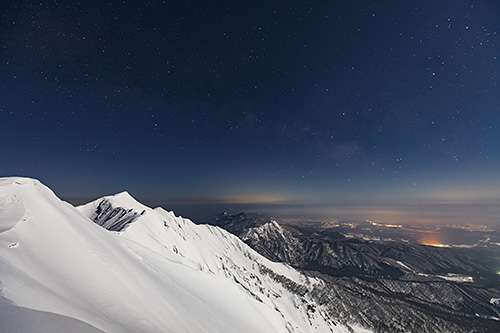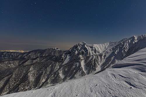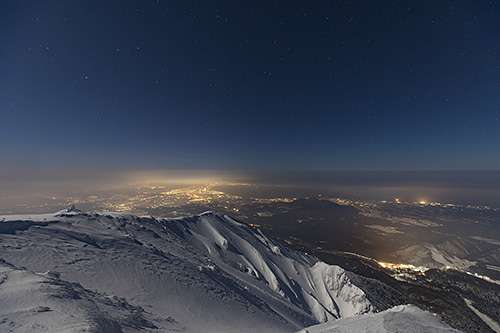 夜の北壁、見下ろせば弓ヶ浜の夜景。