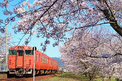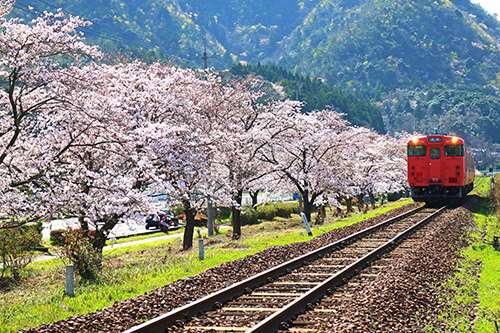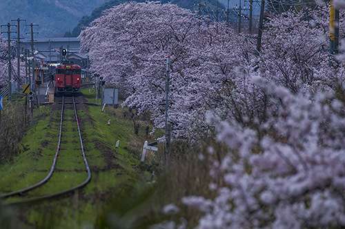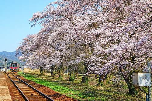 マナーを守り線路脇で見學するもよし、 ローカル列車に乗って旅気分で車窓からの お花見を楽しむのもまたよし。 ご友人誘って出かければ、 こんな桜の楽しみ方もきっと満足いただけるはずですよ。
