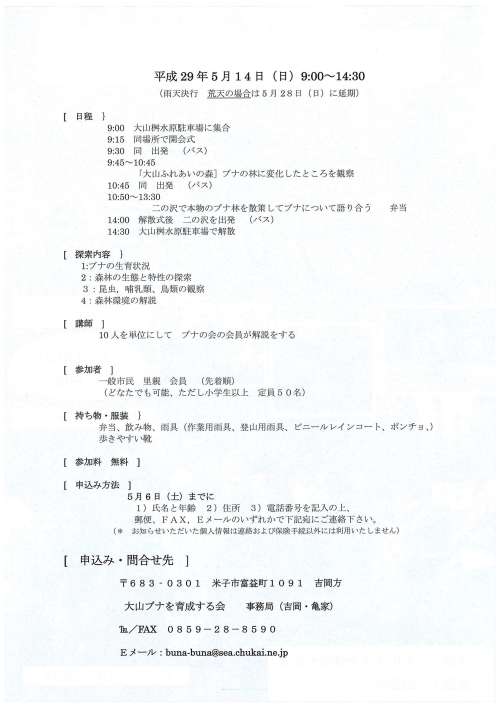 5月14日(日)にも?ブナ観察會?の開催を予定されていますので