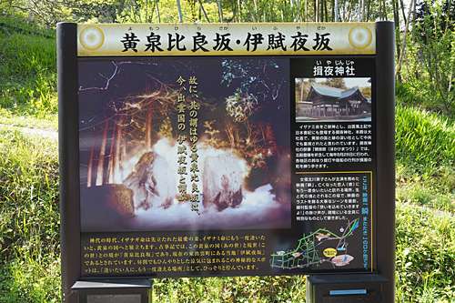古事記では、黃泉の國とこの世との境が 「黃泉比良坂」であり、その場所は出雲國の伊賦夜坂(いふやさか)で あると記されていることに由來します。