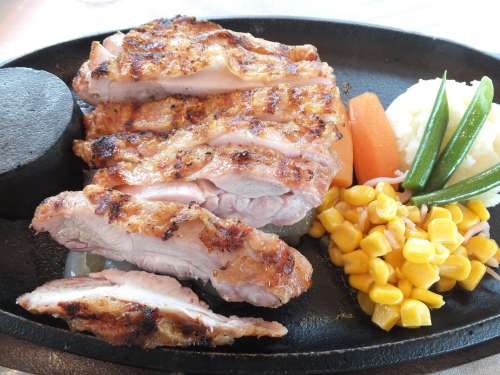 今回はランチに伺い、「熟成牛ロースステーキ」「I.G特製ハンバーグ」 「大山ハーブチキン モモステーキ」をいただきました。