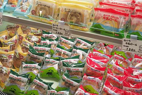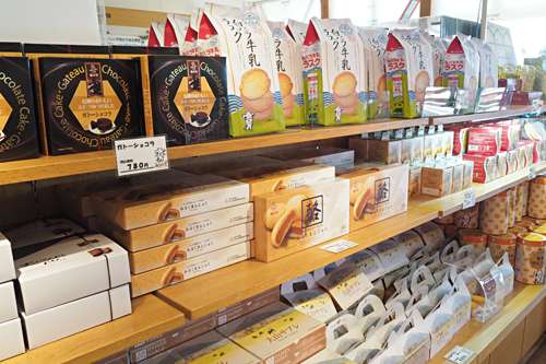 店內にはおなじみ白バラ牛乳シュークリームや、 牛乳を使ったお菓子などがいっぱい。 どれも美味しそうです。