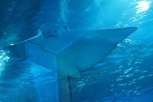 水中でも胸ビレを広げ優雅に泳ぐ姿は