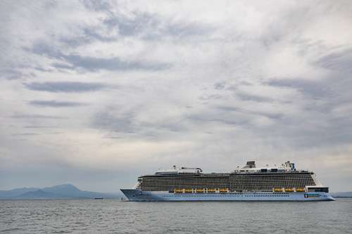 世界最大規(guī)模を誇る豪華客船 「クァンタム?オブ?ザ?シーズ」が 境港にやってきた。 まさにその大きさは 港に立つ巨大ホテルのよう。 颯爽と大山を借景に進む様は 海の王者のような貫祿でした。
