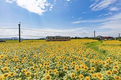 なぜに? 実はこれ、伯耆町が 「TWILIGHT EXPRESS 瑞風」に 乗られたお客様への地域のおもてなしとして 用意した花畑だそうな。 きっと、列車に乗られた多くの人が 車窓からこの風景を楽しまれるのでしょうね。。