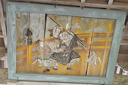 參道を進むと隨神門には弁慶と 牛若丸の絵が掲げられていました。