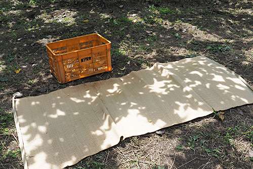 係りの方の案內でゴザが割り當てられますので、 ここを拠點に梨狩りのスタートです。
