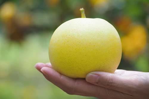 青梨はより明るく、黃みがかった緑色が 甘味と酸味のバランスが良いとのこと。