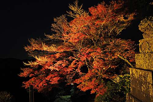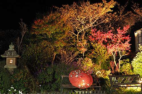 ライトアップされた境內と尺八の幽玄な音色が相まって、