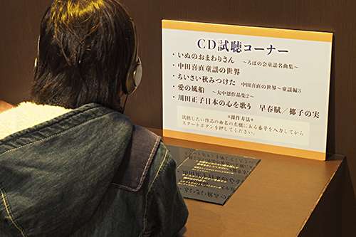 童謡のコーナーでは童謡の本が展示され、 実際に童謡を聞くこともできます。