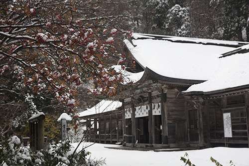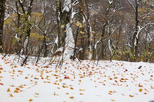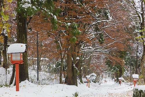 標高700m。 大山寺や大神山神社奧宮への參道では、 降り積もった雪と紅葉の落葉という美しい コントラストを拝むことができました。 まさに秋と冬のせめぎあい。 これも自然豊かな大山の特権。 本格的な冬到來の前に ぜひ一度は見ておきたい 日本の風景の一つですね。