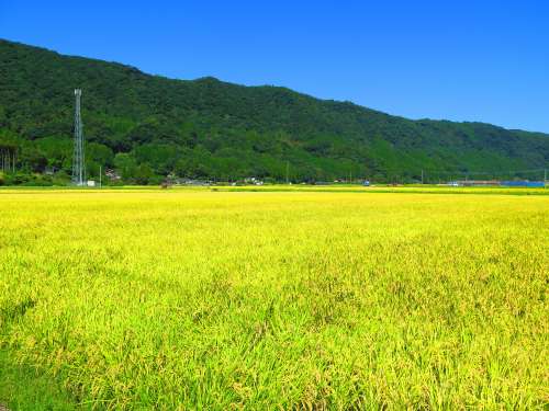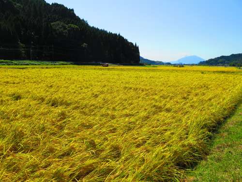 朝露に濡れた稲穂は、太陽の光が反射し「眩い黃金色」に輝いていす。
