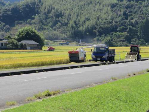 いつも通る県道475號線、ロイヤルシテイ霧島妙見臺と霧島高千穂リゾートランドに続く道でも季節が移り「秋の収穫」が始まりました。