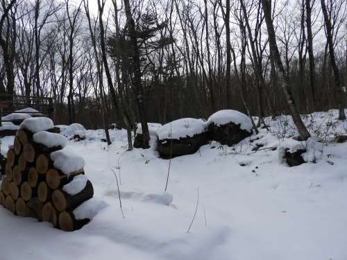 雪のあるうちは、ストーブ用の薪割り作業もできません。