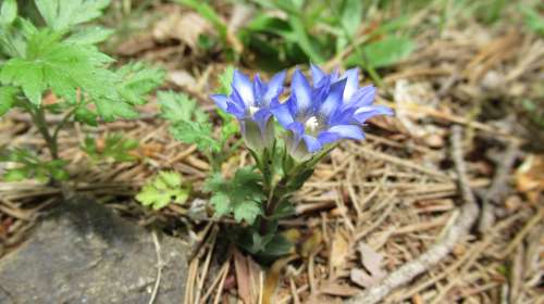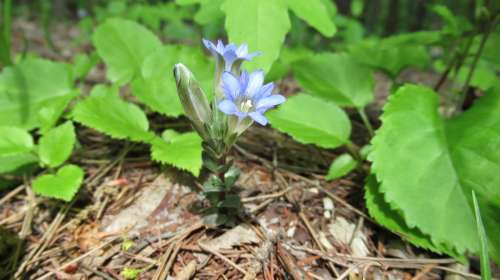 春の高原に咲くリンドウで、笹が入り込んでいない比較的明るい場所を探すのがポイントです。
