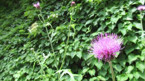 梅雨入り前の盛夏、気溫は30度近い日が続きノアザミも咲き始めました。