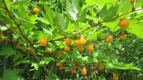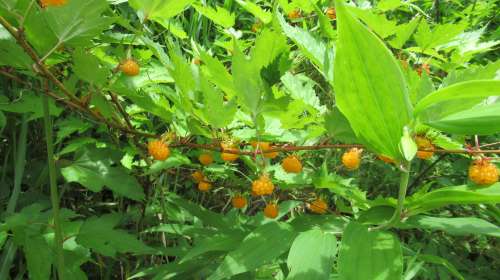 モミジイチゴの果実も見つけました。 葉が紅葉するモミジの形をしていて、甘さ控えめの上品な味です。 モミジイチゴの右側(cè)に寫っているのはヤマユリ、まだ固い蕾ですね。
