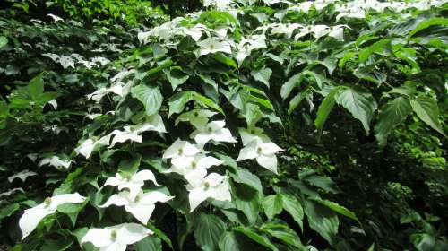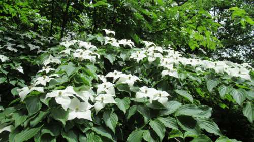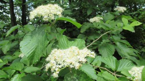 晩夏に真っ赤な果実をつけるガマズミの花も咲きました。 果実は、焼酎に漬けて果実酒にするととても美味しいです。 地元では、ガマズミをヨツズミと言う方が多いようです。 名前がいくつもあると會話するのが大変ですね。(笑)