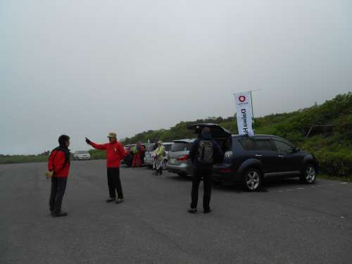 いざ出発したところ、車を運転して集合場所に近づくにつれ、雨が霧に変わり到著するころには道路が乾いた狀態だったのでビックリ。 山の天気は、麓の天気だけで判斷してはいけないんですね。 ただ、このパッとしない天候が參加者の減少を招いたのは間違いないようで、集合してみたら參加者は6名でした。