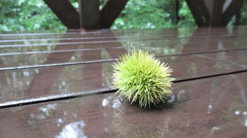 臺(tái)風(fēng)13號(hào)のときだけは大雨になり、栗の毬がポトリ。 暑すぎる夏が続いていますが、栗の毬を見(jiàn)て來(lái)月から秋(9月)になることを思い出しました。 (寫真は平成30年8月撮影)