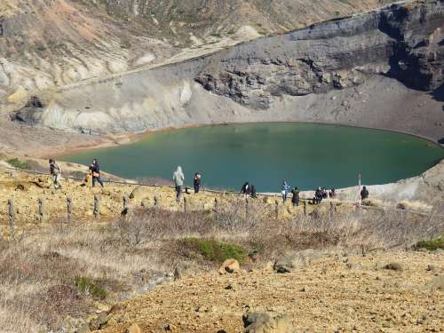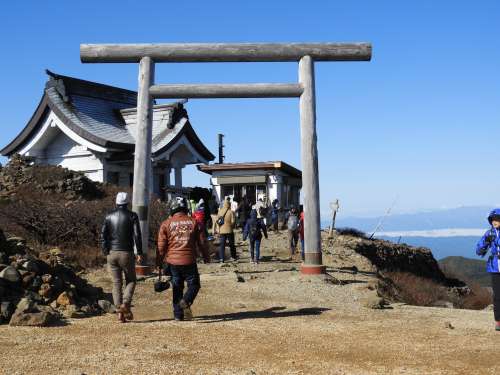 お釜のある刈田岳山頂付近では、冷たい強い風が吹き、水たまりが凍っていました。 刈田嶺神社の御神體は、夏の間は、ここ刈田岳山頂の奧宮にあり、冬期間は麓の遠刈田溫泉にある刈田嶺神社の里宮に移されるそうです。 この日は、私が今まで見たこともないくらい大勢の、善男善女が參拝していました。