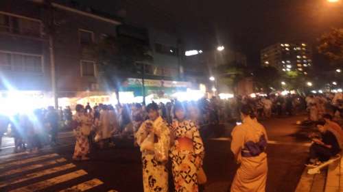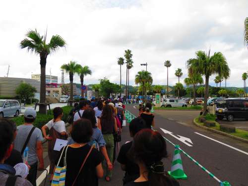 開催までに少し時間があったので會場の外に出てみると、人混みで大変混雑をしていました。なかには、可愛らしい浴衣を著た「薩摩おごじょ(鹿児島弁で気だてがよく、優しい女性)」の姿も見受けられました。