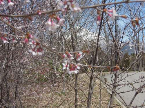 また、今年は少し早くヤマザクラも同時に開花しました。