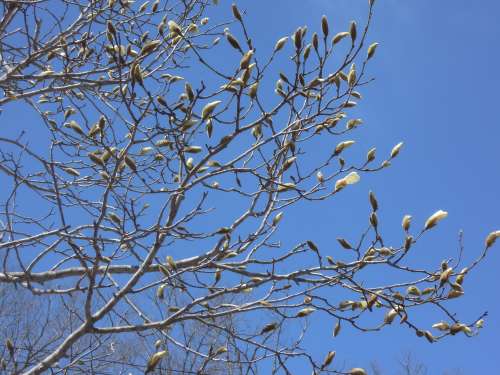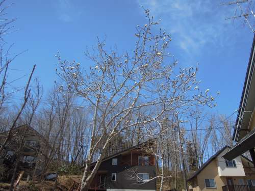 ようやく分譲地に春を告げるコブシの花が開花しました。