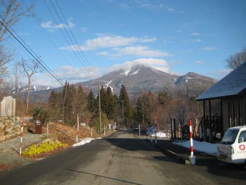 【豬苗代ヒルズウェルカムオフィス前から磐梯山を望む】