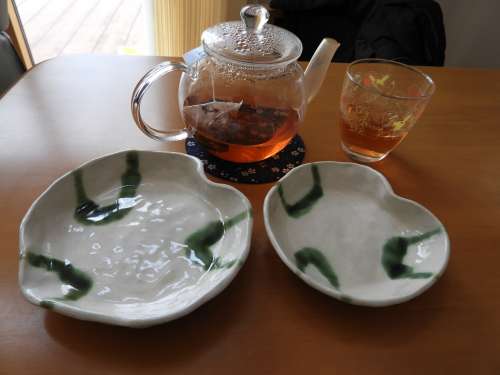 このお皿は、ちょっとしたオカズを盛ってもいいなと思いましたが、ティーポットの橫においてみたら、ケーキや和菓子を載せても素敵じゃない?と思えてきました。 災い転じてといいますか、怪我の功名といいますか、まあ予想と違った展開や結果が出たからといって、悪いことばかりではないということを、またまた學んだようなものです。 狀況が変わったのであれば、柔軟に対応していけばいいとい うことですね。(そのように自分を納得させております。) それにしても、楽しい有意義な「陶蕓教室」ではありました。