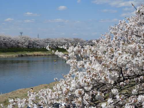 こちらは、蔵王町に隣接した大河原町というところの、町の中心を流れる白石川の桜です。 「白石川堤一目千本桜」として有名であり、このあたりでは一番の桜の名所と言えるかもしれません。 私が訪れたこの日は、まさに満開で、多くの花見客で賑わっておりました。