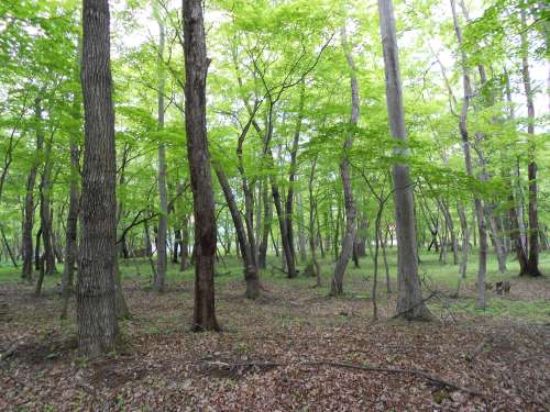 これは、5月半ば現(xiàn)在の、いつものウッドデッキから眺めた林の様子です。 葉っぱもだいぶしっかりして來(lái)ましたが、まだまだ緑も薄く、柔らかそうです?!?br /> 今回この表題を選んだのは、まさに林やお山の様子が「若葉のころ」そのものなので、ということではあるのですが、実はそれだけではありまん。