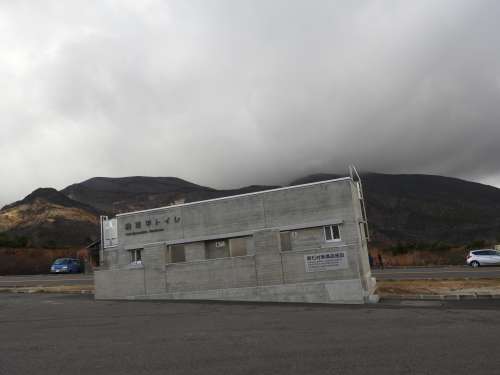 ん、これは何? みなさまのご認識通り、トイレでございます。ここは、先ほどの滝見臺からさらに登ったところの、駒草平というところに新しく建てられた、「噴石対策建物」であり、また、「災害時避難所」でもあるトイレです。紅葉の話題の途中でトイレかい、とお思いでしょうが、山登りをする方や、山を訪れる観光客にとって、トイレはとても大事です。 また、平成26年の御嶽山噴火による、多數の死傷者を出した火山災害を受けて、活火山や休火山を抱える自治體などでは、様々な対策を講じることとなりました。このトイレは、その両方の要求を満たして建てられた建物なのだと思います。 ちなみに、駒草平のもっと手前の、賽の磧(さいのかわら)というところにも、同様のトイレが新設されています。
