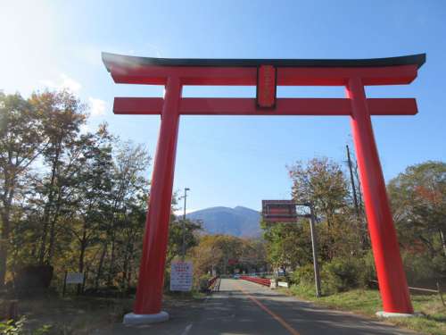 エコーライン入口の大鳥居。大鳥居越しに見る蔵王連峰は大変綺麗でした