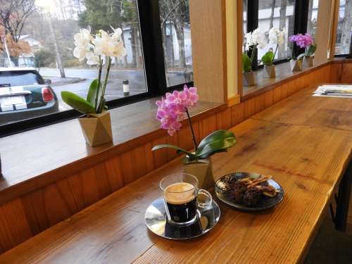 訪れた日は、冷たい雨が降る寒い日で、ストーブの暖かさがふんわりと迎えてくれました。以前に比べると、確かに明るく柔らかな雰囲気ですし、もう少し手を入れるということですので、サロンの名に恥じない、オーナーさんたちの憩いの場所になることでしょう。「自由にご利用ください。」とのお話ですから、いろんな使い方ができそうです。この日は、淹れたてのコーヒーと、こちらも以前にご紹介した、川崎町の「イーレ!はせくら王國」特製の高級チョコレートをごちそうになりました。帰りには、ダイワハウスが栽培を手掛け始めたという、「ミニ胡蝶蘭」をお土産にいただくというおまけ付きです。