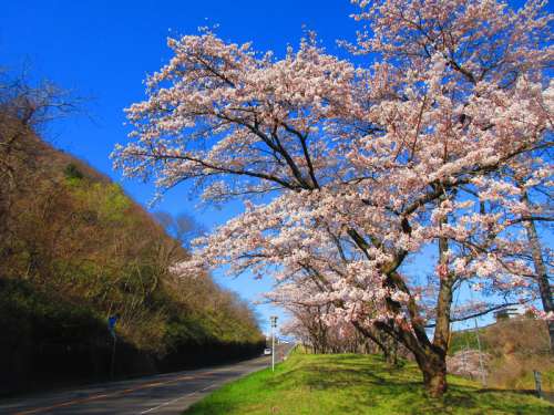 4月11日 いつも車で通る釜房湖の桜並木が見頃となり、大変きれいでしたのでお屆けします