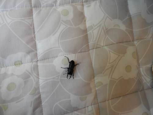 シ」です。別荘地というものは、たいていは自然豊かな場所を選んで開発されるものだと思うのですが、そのため、たまにびっくりするような訪問者があります。なんか臭うなと思ったら、カメムシが部屋に侵入していたり、薪棚の上で蛇がとぐろを巻いていたり。動物たちが生息しているテリトリーに、こちらがお邪魔しているわけですから、文句を言えた義理ではありませんけれど。その點、クワガタムシやカブトムシなどはむしろ歓迎したい訪問者です。