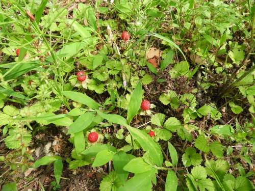 こちらは、特に珍しい植物ではありません。「ヘビイチゴ」です。どこででも見かけるものですが、緑の中で真っ赤な実が目立っていて、初夏を感じさせる植物ですね。調べてみたら、ヘビイチゴは7月13日の誕生花だそうですよ。この日の誕生日の方は、花自體は黃色の可愛らしい花であるとはいえ「ヘビイチゴ」という言葉の響きから、ビミョーな感想を抱かれるのではないでしょうか。