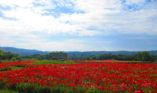 約200萬本の赤やピンク色のポピーが見頃を迎え、色鮮やかに一面咲いていました