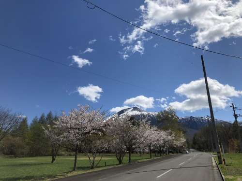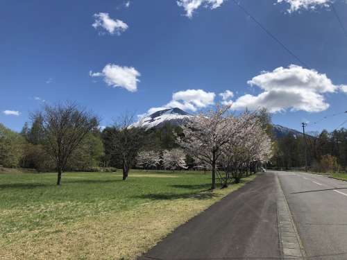 お別れは當リゾート內「緑地の桜と巖手山」です。