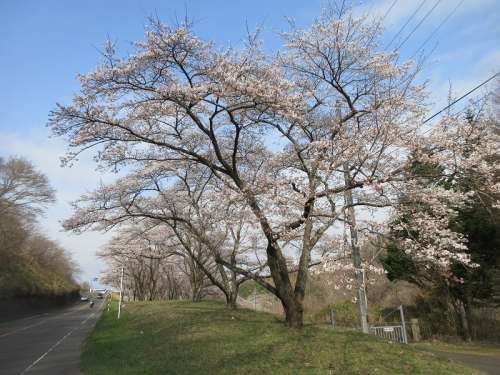 4月3日 いつも車で通る釜房湖畔の桜並木が見頃を迎えていますので、お屆けします